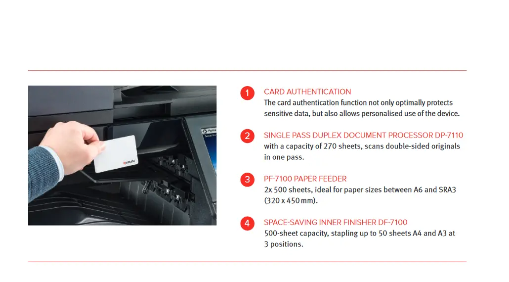 - Duplex: 180/180 ipm (TASKalfa 4052ci, 5052ci, 6052ci)